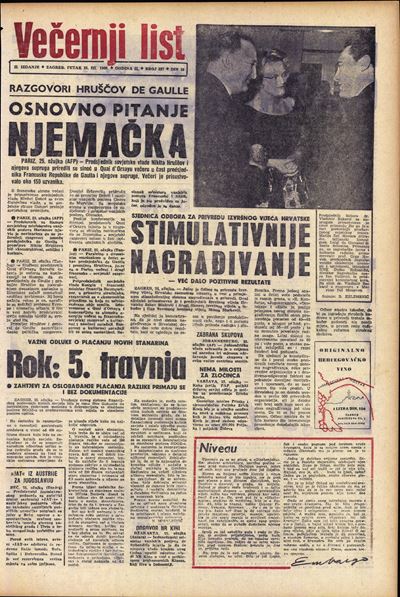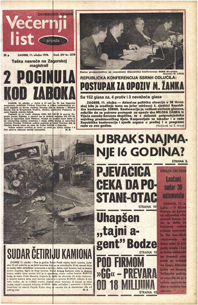 Stranice Arhive Večernjeg lista ne smiju se objavljivati, niti prenositi ni u kakvom obliku bez pisane dozvole Večernjeg lista. Pisanu dozvolu te cjenik možete zatražiti na e-mail adresi arhiva@vecernji.net.