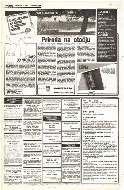 srijeda, 7. kolovoza 1985. / Br. 7974 / Str. 20